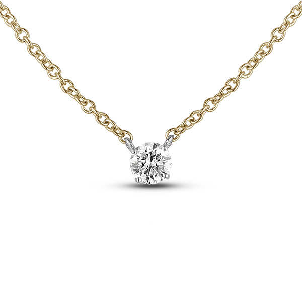 10K yellow and white gold solitaire diamond necklace featuring a 0.16 carat round brilliant cut Canadian diamond.