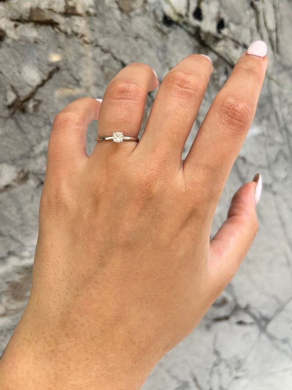 Engagement ring currently in stock size 6.5, please email contact@lugaro.com for sizing inquiries.