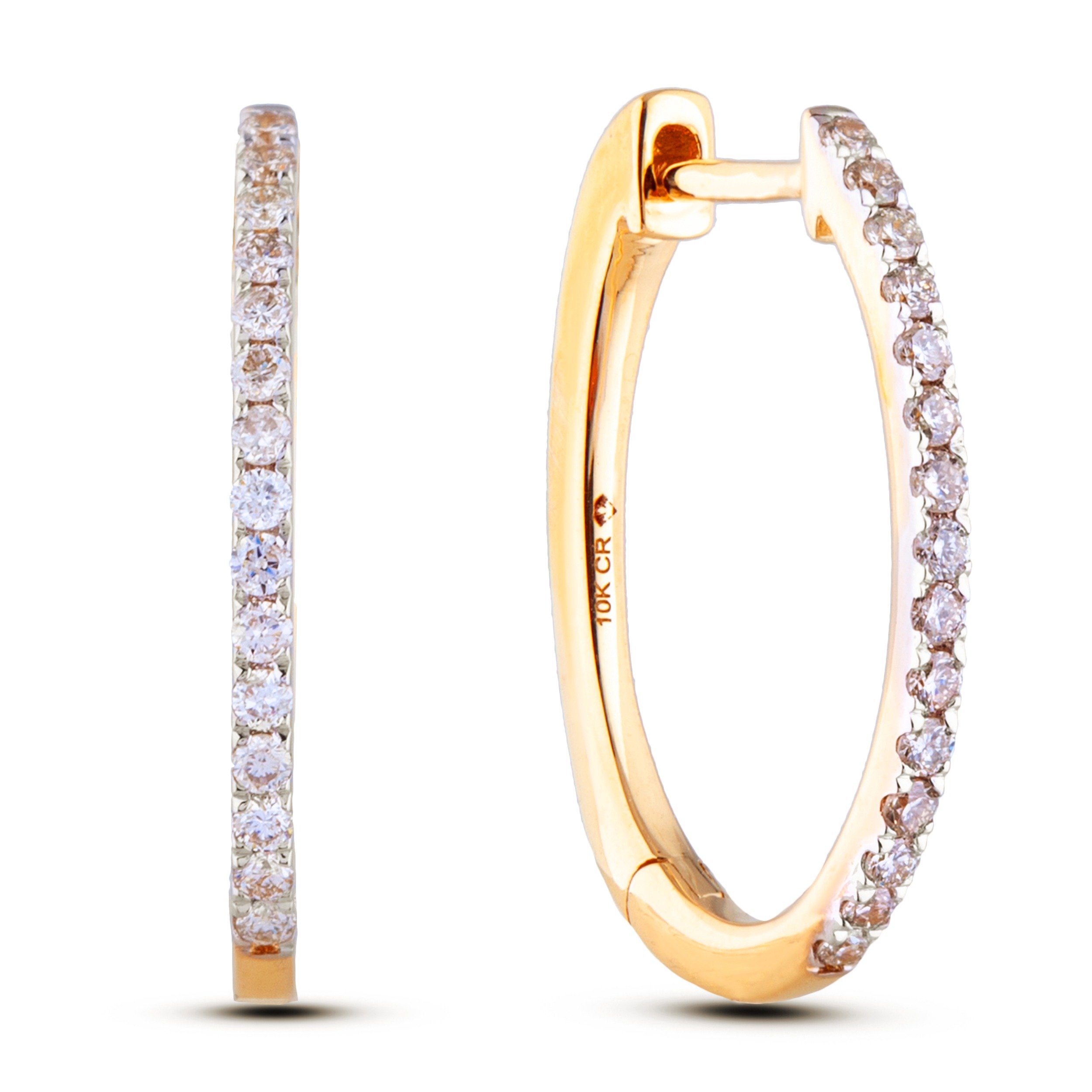 10K yellow gold diamond hoop earrings featuring 0.25 carat total weight round brilliant cut Canadian diamonds.