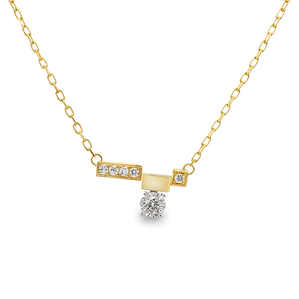 18K white and yellow gold necklace featuring a 0.10 carat De Beers Forevermark diamond, accented by 0.08 carat total weight round brilliant cut diamonds.