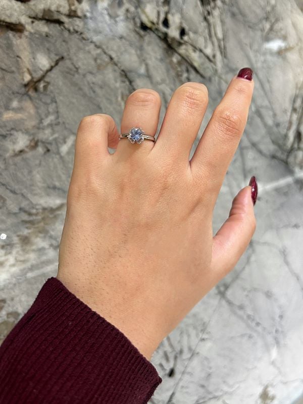 Be the first to review “Ceylon Origin Blue Sapphire and Canadian Diamond Flower Ring in White Gold”