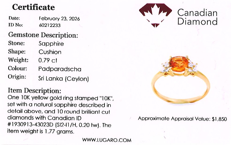 Ring includes a Canadian diamond certificate.