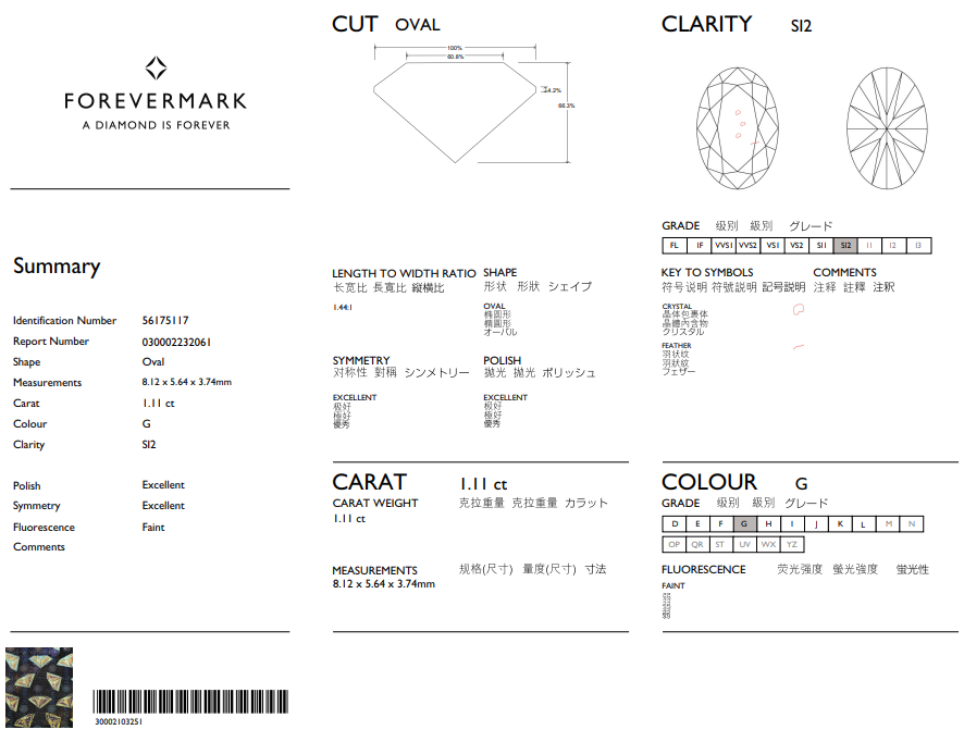• Certificate: De Beers Forevermark