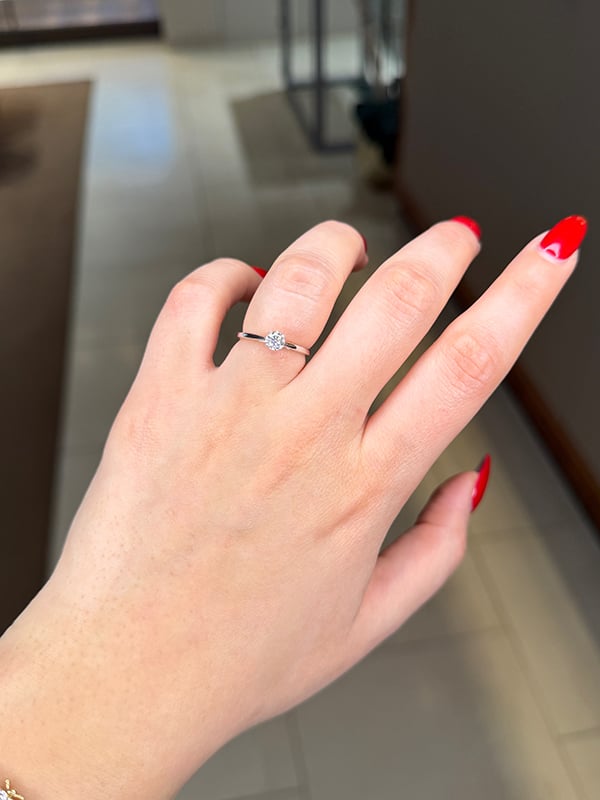 Ladies' solitaire engagement ring in size 6.5, please email contact@lugaro.com for sizing inquiries.