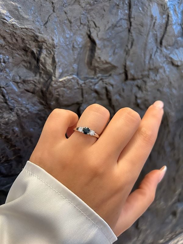 Be the first to review “De Beers Forevermark and Ceylon Blue Sapphire Trilogy Ring in 18K White Gold”