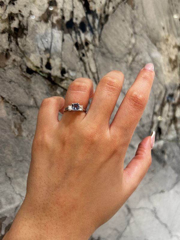 Be the first to review “De Beers Forevermark Black Label Diamond and Ceylon Blue Sapphire Trilogy Ring in 18K White Gold”