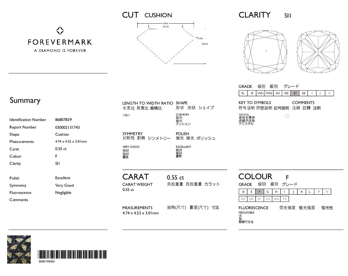 Diamond solitaire engagement ring includes a De Beers Forevermark diamond certificate.