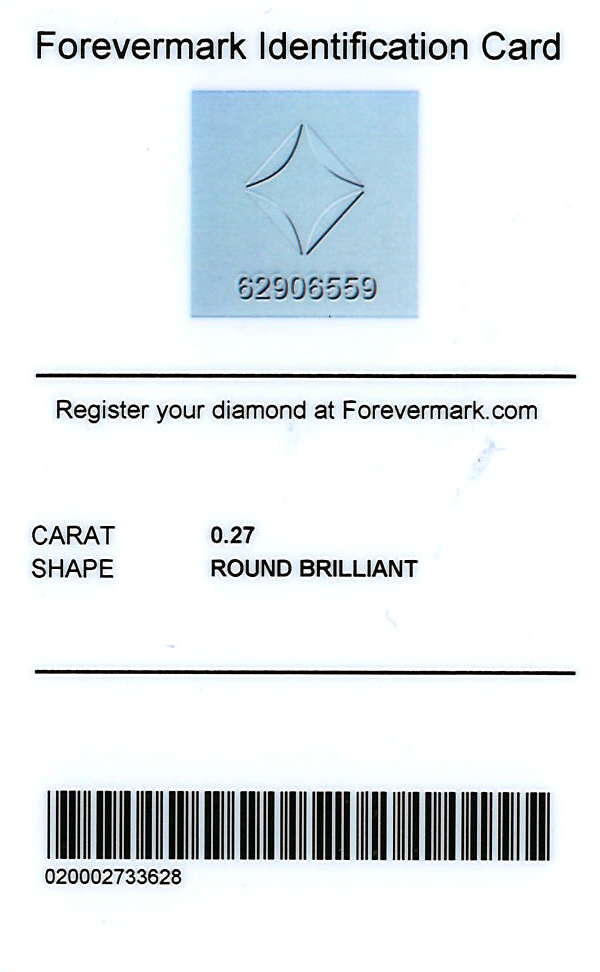 Diamond ring includes De Beers Forevermark diamond Certificate.