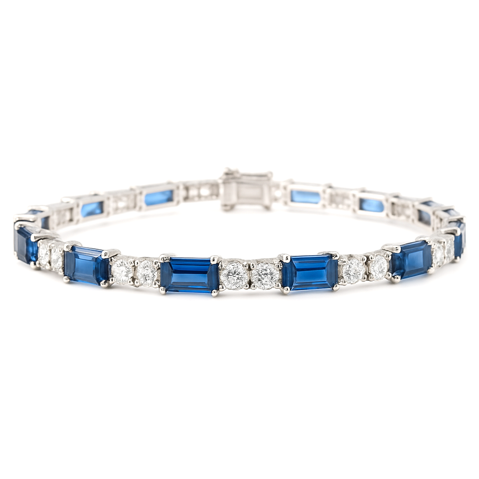 Be the first to review “De Beers Forevermark Diamond and Ceylon Sapphire Tennis Bracelet in 18K White Gold”
