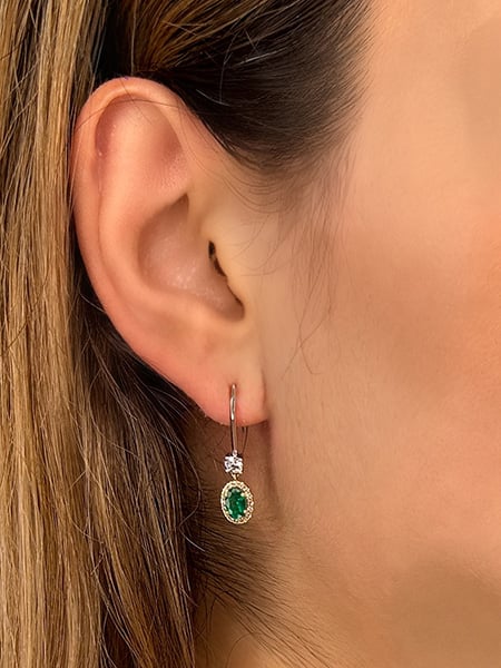 Be the first to review “De Beers Forevermark Diamond and Emerald Oval Halo Drop Earrings in 18K Gold”