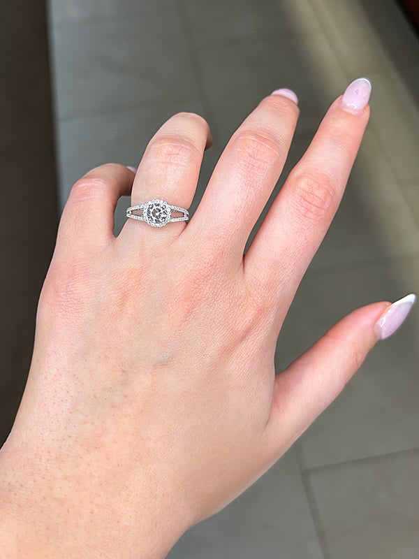 Engagement ring currently in stock size 6.5, please email contact@lugaro.com for sizing inquiries.