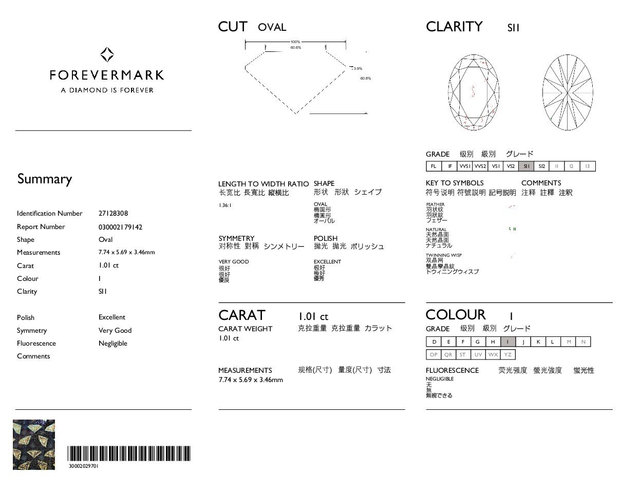 • Certificate: De Beers Forevermark