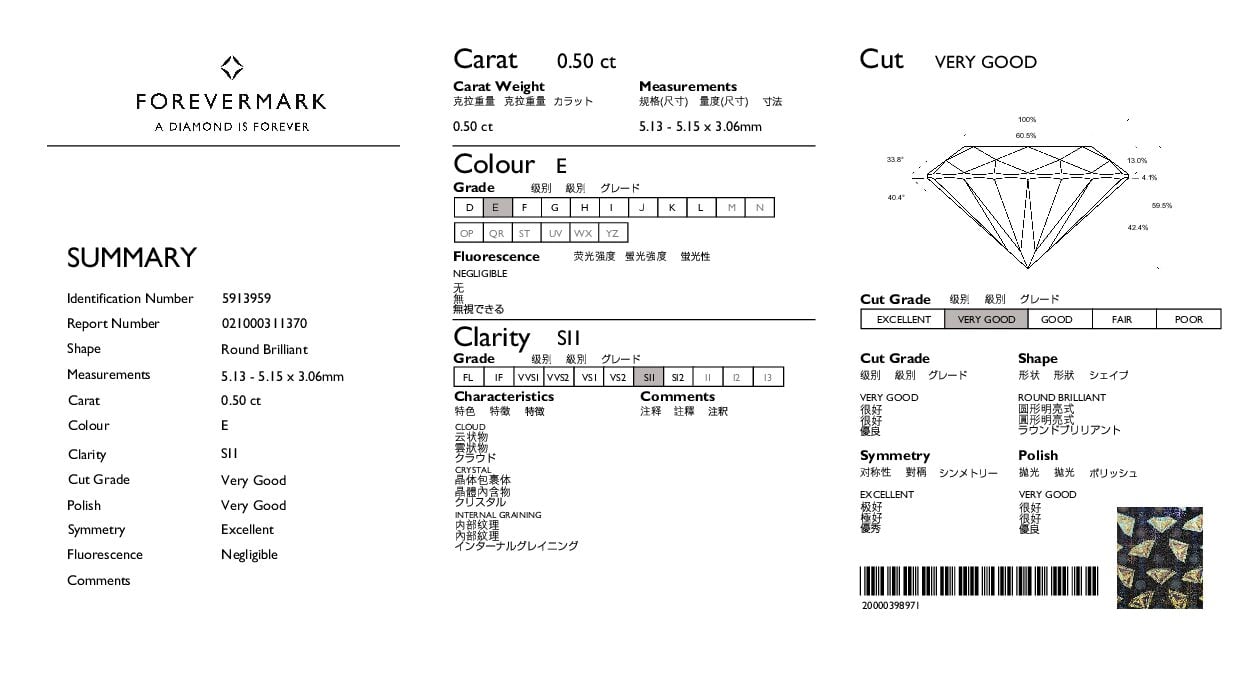 • Certificate: De Beers Forevermark