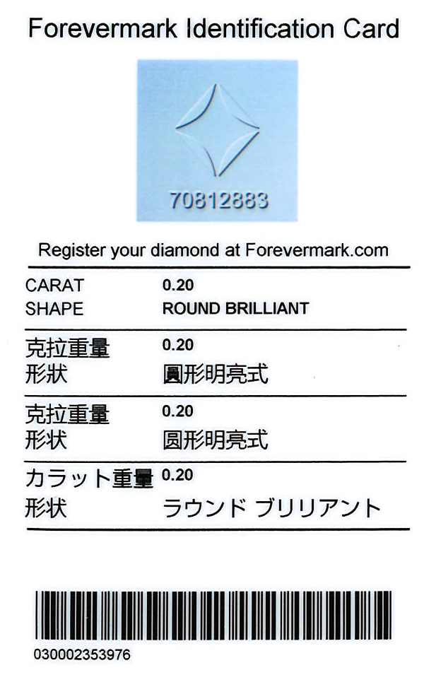 • Certificate: De Beers Forevermark