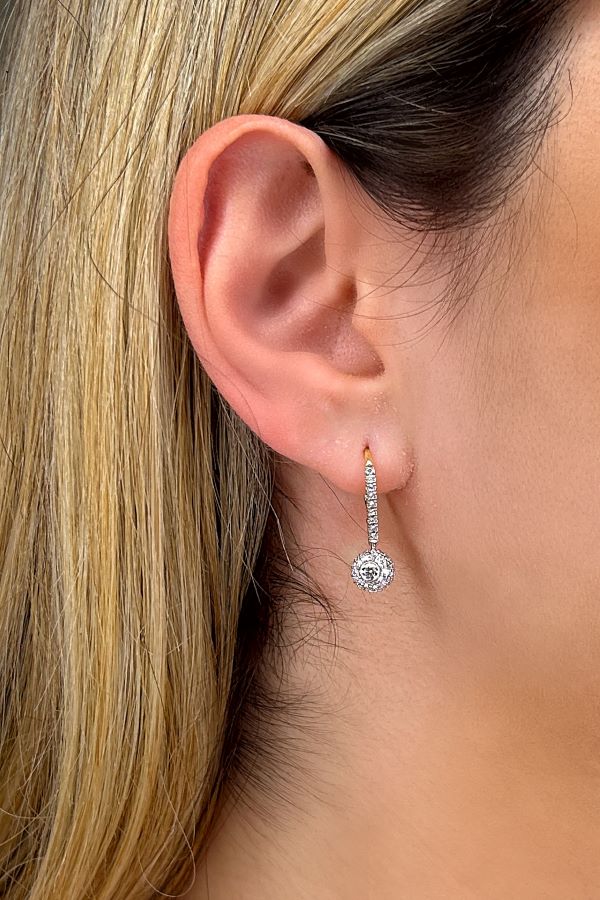 Halo dangle earrings include 2x De Beers Forevermark certificate.
