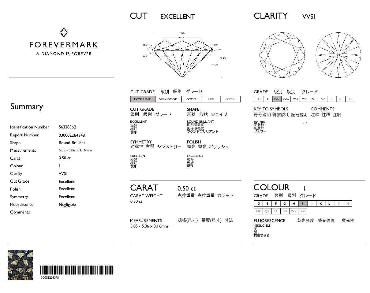 • Certificate: De Beers Forevermark