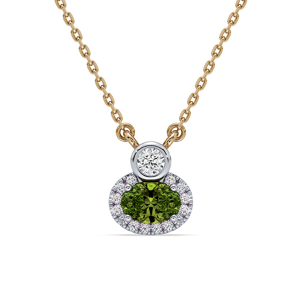 14K yellow and white gold halo pendant featuring a 0.60 carat natural alexandrite, accented by 0.10 carat total weight round brilliant cut De Beers Forevermark diamonds.