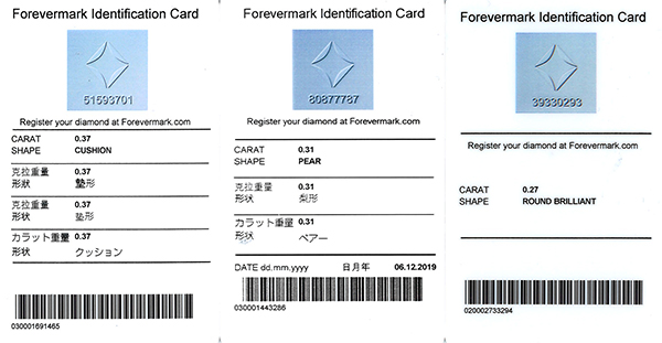 Three stone diamond ring includes 3x De Beers Forevermark certificates.
