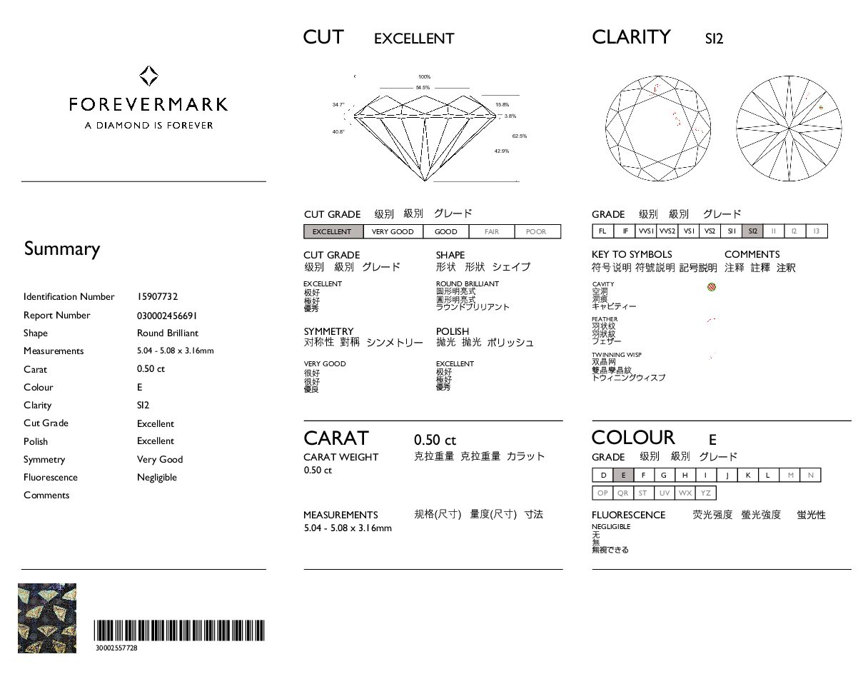 Diamond stud earrings include 2x De Beers Forevermark certificates.