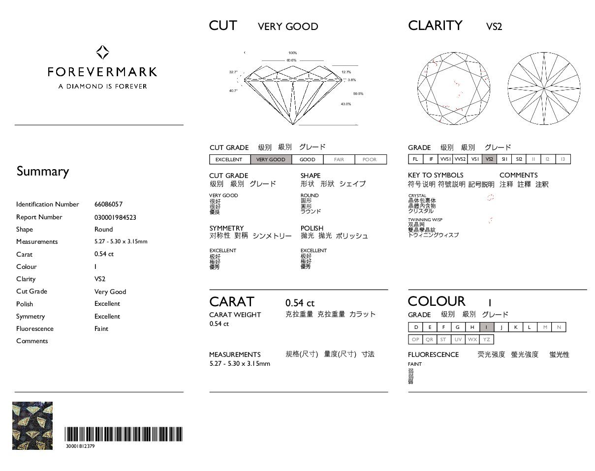 Solitaire diamond pendant includes a De Beers Forevermark diamond certificate.