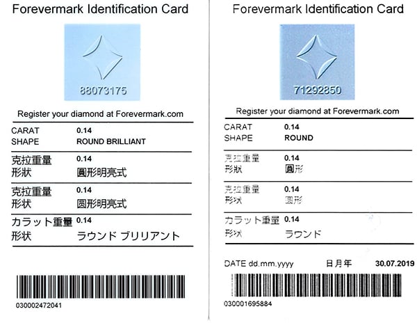 Stud earrings include 2x De Beers Forevermark certificate.