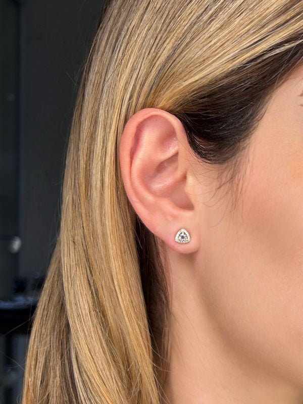 Be the first to review “De Beers Forevermark Diamond Trilliant Halo Stud Earrings in 14K Yellow Gold”