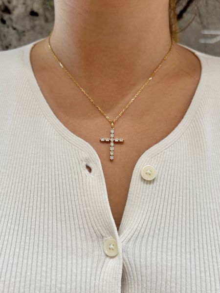 Cross pendant includes a De Beers Forevermark diamond certificate.