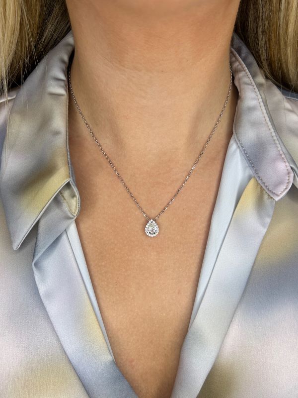 Be the first to review “De Beers Forevermark Pear Shaped Diamond Halo Pendant in 18K White Gold”