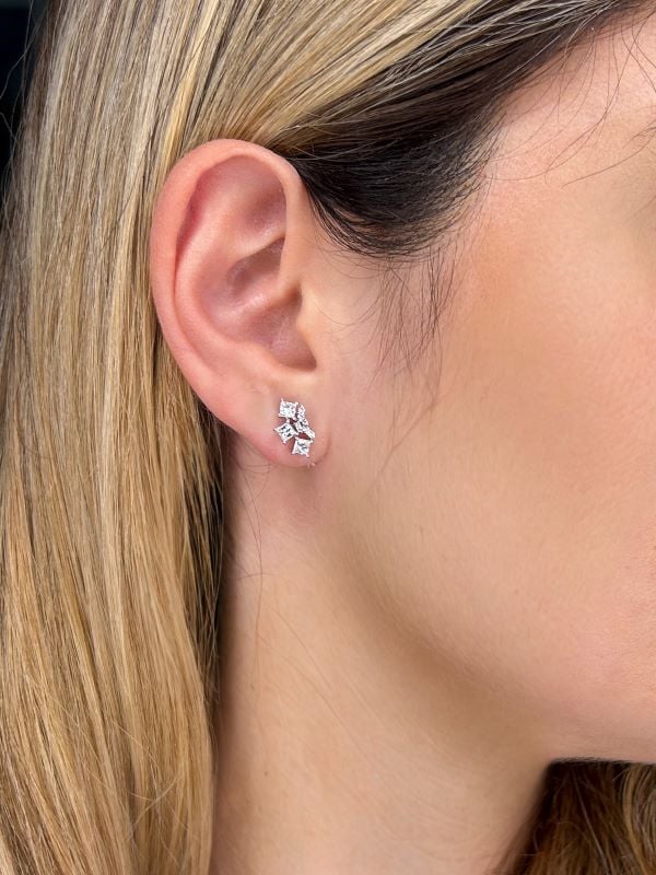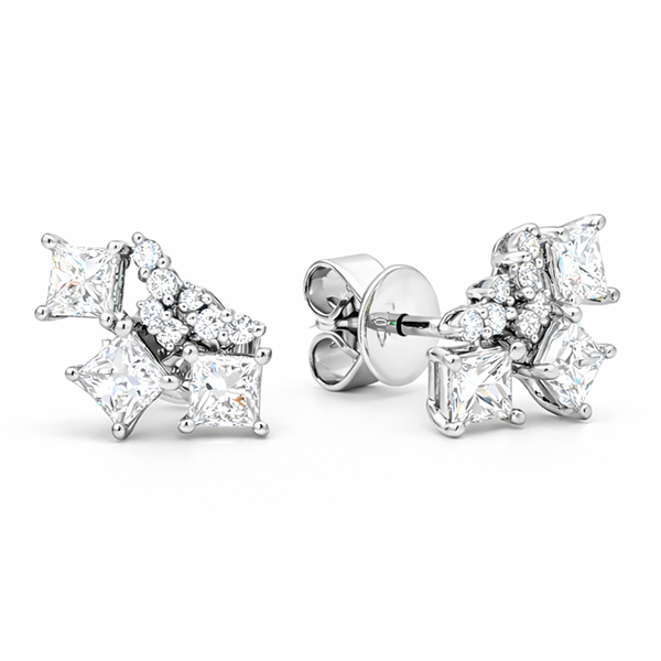 Diamond Art Deco Stud Earrings in 18K White Gold