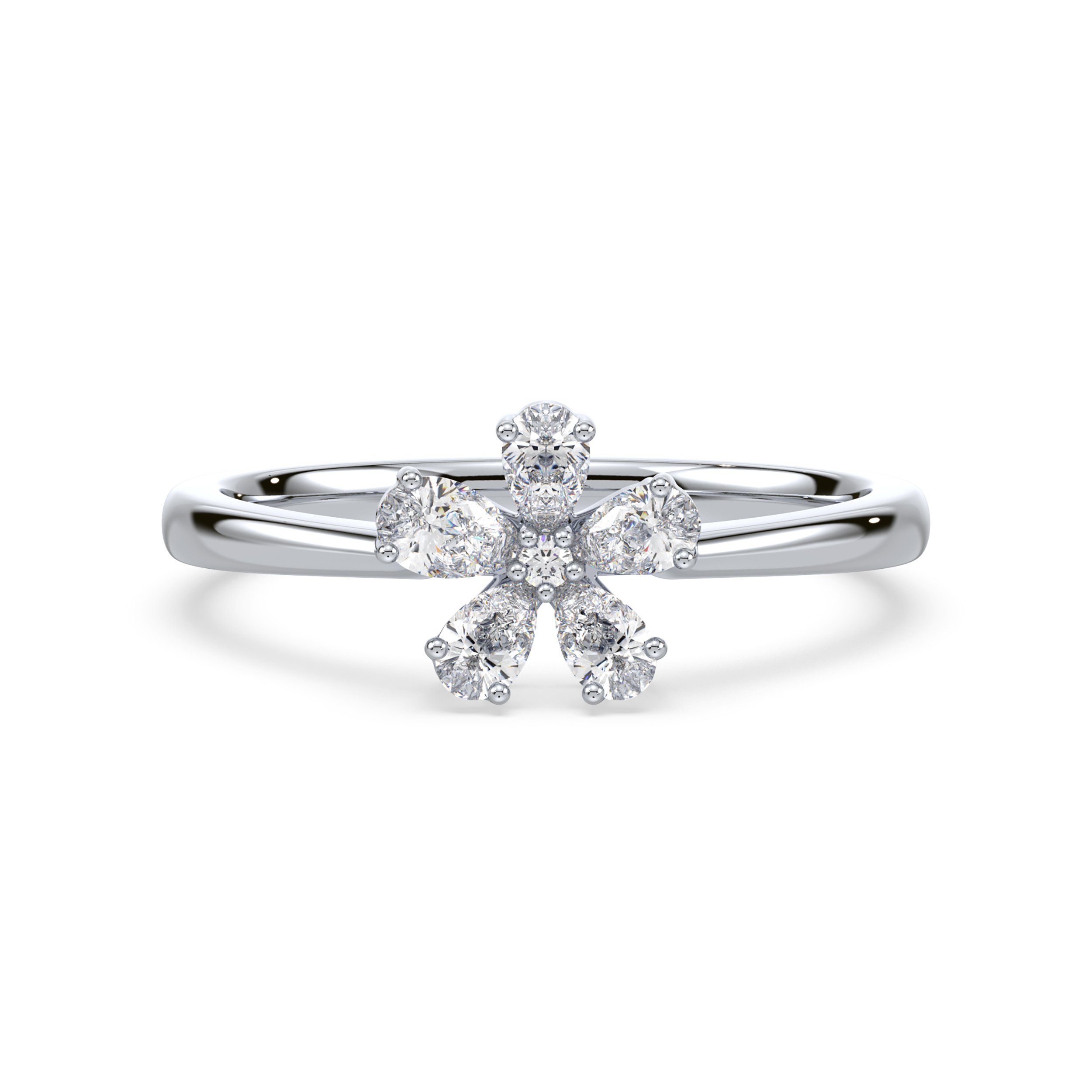 18K white gold floral ring featuring a 0.35 carat total weight diamond.