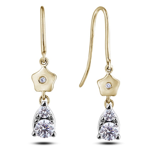 10K white and yellow gold hook earrings 0.20 carat total weight round brilliant cut diamonds.