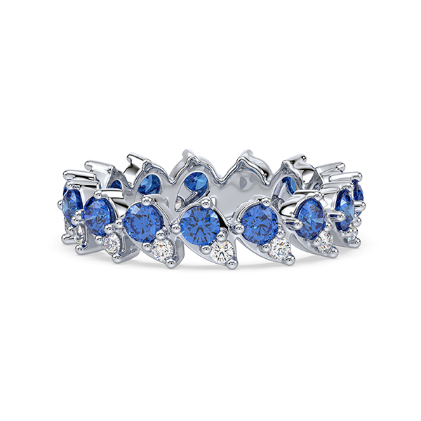 10K white gold eternity ring featuring 0.32 carat total weight round brilliant cut Canadian diamonds, accented by 1.70 carat total weight Australian sapphire.