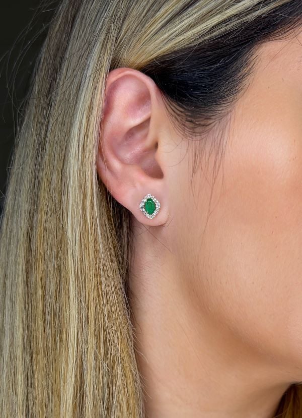 Be the first to review “Emerald 0.80 Carat TW and Canadian Diamonds Rhombus Halo Stud Earrings in Yellow Gold”