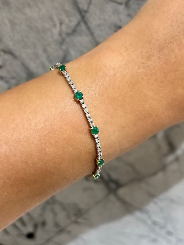 Emerald and Canadian Diamond Tennis Bracelet in White and Yellow Gold