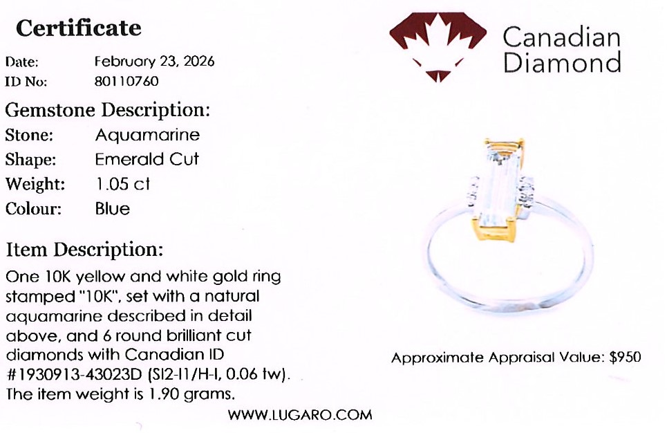 Be the first to review “Emerald Cut 1.05 Carat Aquamarine and Canadian Diamond Ring in Yellow and White Gold”