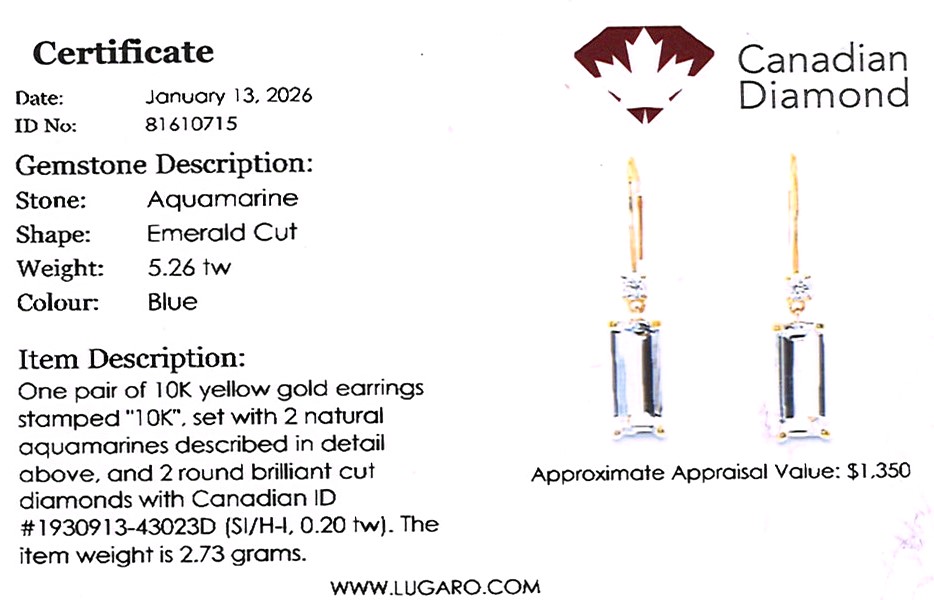 Earring included Canadian diamond certificate.