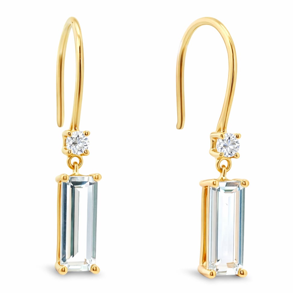 Be the first to review “Emerald Cut Aquamarine and Canadian Diamond Drop Earrings in Yellow Gold”