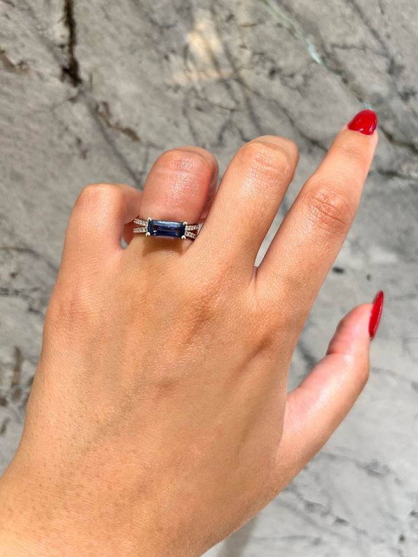 Be the first to review “Emerald Cut Sapphire & Diamond Hidden Halo East-West Ring in 14K White Gold”
