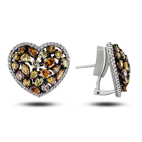 Fancy Desert Diamond Heart Shaped Mosaic Earrings in 18K White Gold