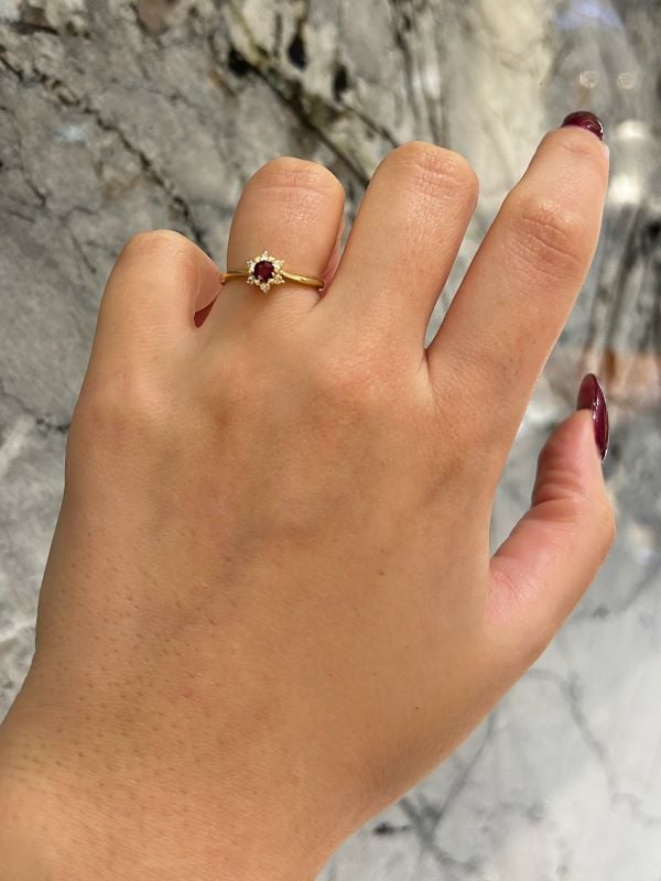 Be the first to review “Flower Halo Ring Set With Ruby and Canadian Diamond in Yellow Gold”