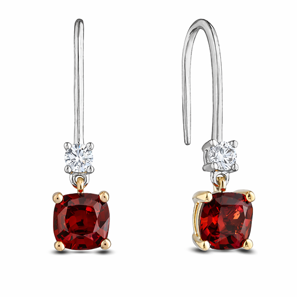 Be the first to review “Garnet and Canadian Diamond Drop Earrings in Yellow & White Gold”