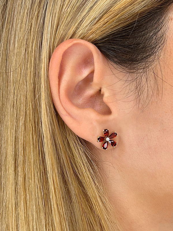 Be the first to review “Garnet and Canadian Diamond Flower Earrings in Yellow Gold”