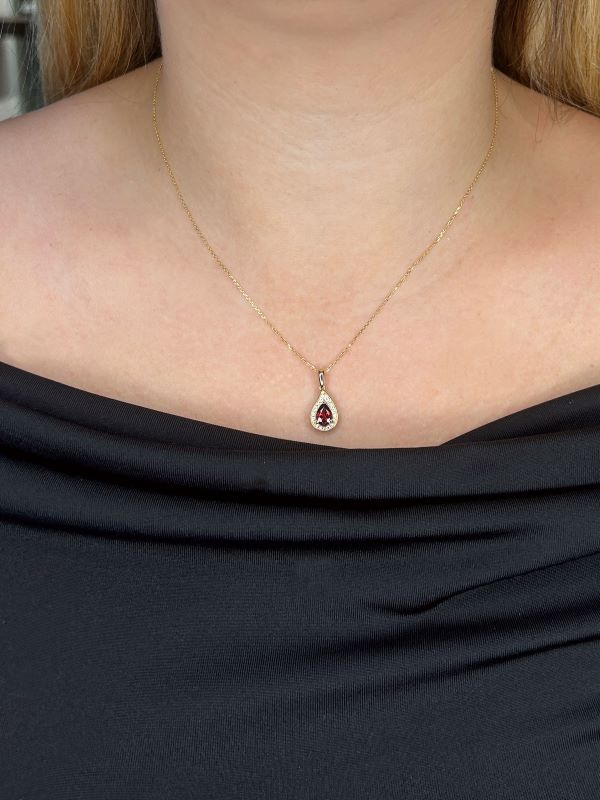 Be the first to review “Garnet and Canadian Diamond Halo Pendant in Yellow Gold”