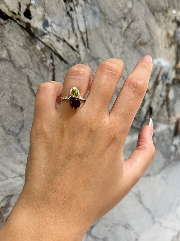 Be the first to review “Garnet and Peridot Toi et Moi Ring With Diamond Accented in Yellow Gold”