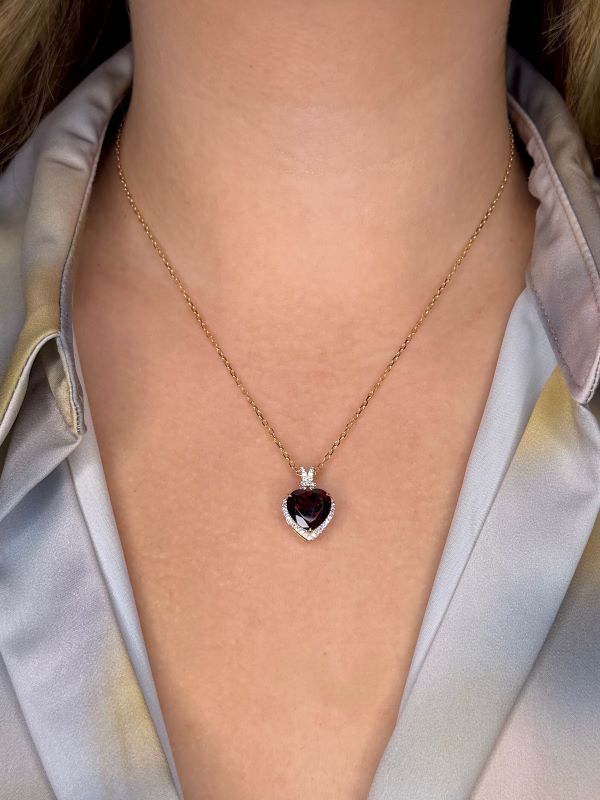 Be the first to review “Garnet Heart Pendant with Canadian Diamond Halo In 14K Yellow Gold”