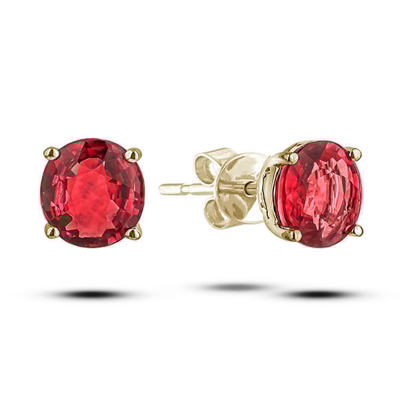 10K yellow gold earrings featuring 0.67 carat total weight round shape garnet.