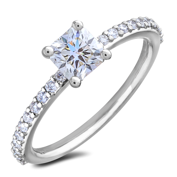 18K white gold classic diamond engagement ring featuring a 1.00 carat round brilliant cut GIA diamond, accented by 0.22 carat total weight round brilliant cut diamonds along the shank.