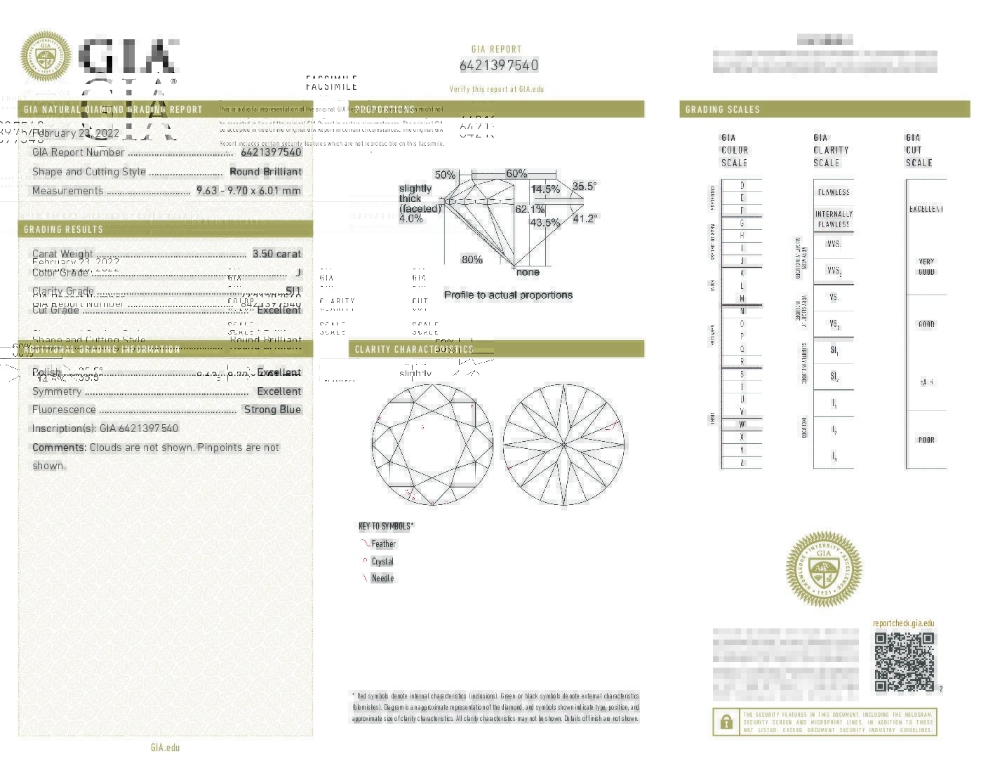 18K white gold diamond halo engagement ring featuring a 3.50 carat round brilliant cut GIA diamond, accented by 0.77 carat total weight round brilliant cut diamonds.