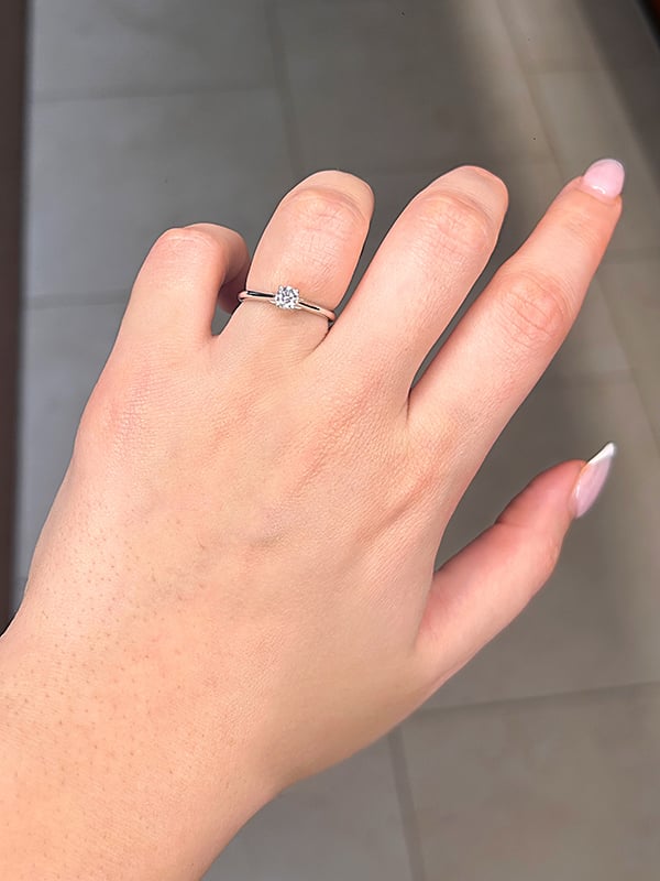 Ladies' solitaire engagement ring in size 6.5, please email contact@lugaro.com for sizing inquiries.
