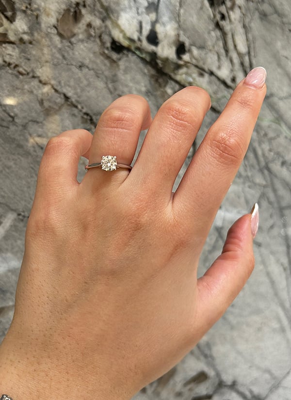 Ladies' solitaire engagement ring in size 6.5, please email contact@lugaro.com for sizing inquiries.